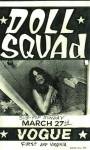 Doll Squad is an American alternative rock band formed in Seattle, Washington in 1987 by Mara Dralle (lead vocals) and Helen Halloran (vocals, rhythm guitar) and originally active until 1989. Though not signed to any record label, the band received notoriety in the Seattle music scene after performing with Nirvana in 1988. Following their dissolution the following year, members of the band embarked on separate musical projects. In 2008, the band reformed, however without original drummer Patty Schemel, who later became notable as the drummer of Los Angeles-based band Hole. Mara and Helen reunited Doll Squad with their original bassist, Annette Billesbach, and were joined by Mike Soldano (guitar) and Rich Evans (drums). They played a few shows into 2009.